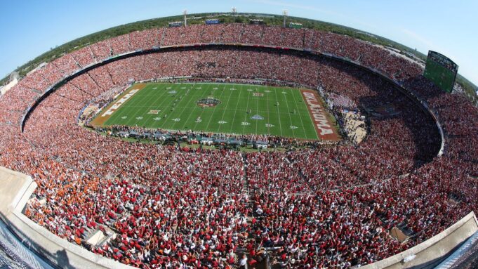 O ambiente é único em uma tigela de algodão para o Rio Vermelho. O oval é cuspido no meio das últimas regiões, cuspido nas 50 jardas, que são métodos mais padronizados, como jogos de bowl. Mas o motivo pelo qual morremos em Oklahoma manteve o túnel na metade. E a buzina ouve.
