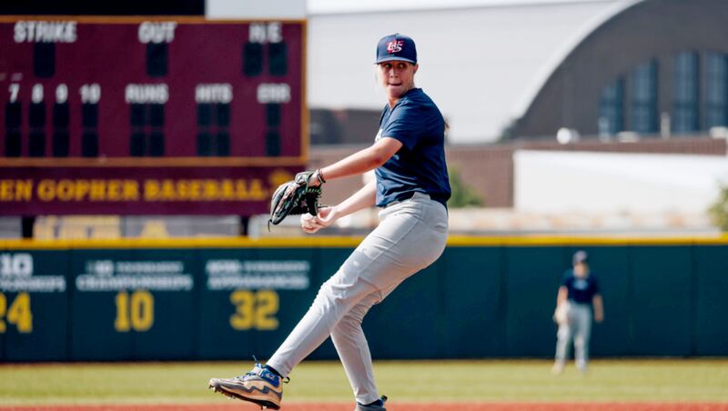 Jordan Andreas, 17 anos, joga no time de beisebol universitário da Dixie High em St. George, Utah. Andreas também é uma das 40 melhores candidatas da Seleção Nacional Feminina de Beisebol dos EUA. | Mandy Orton