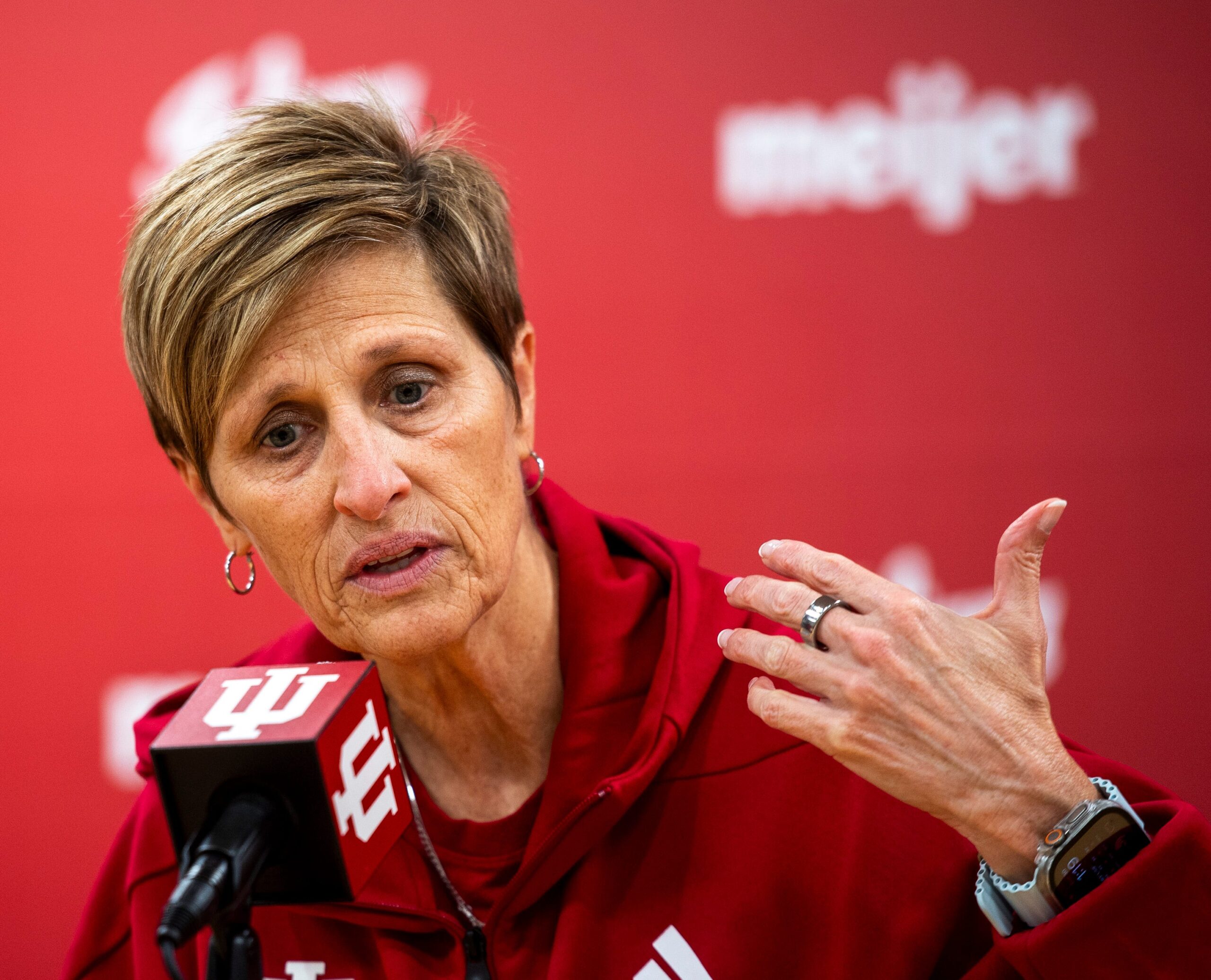 Bloomington – Basquete feminino de Indiana O treinador Terry Moren quebra a maior parte de sua conferência de imprensa do dia da mídia Lista de seu novo visual.