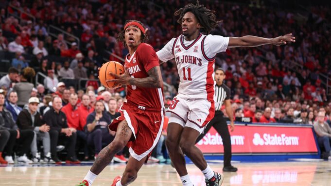 Alabama terminou o primeiro tempo superando o St. John’s por 16-6 e conseguiu uma vantagem de 53-44 no intervalo no 3 de Holloway na campainha. O Crimson Tide assumiu uma vantagem de 10 pontos no início do segundo e St. John’s obteve uma vantagem de 81-80 em uma cesta de 3 pontos de Jason Sanon faltando 8:13 para o fim.