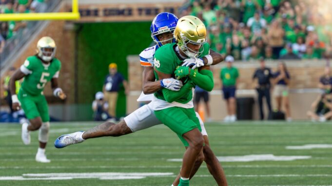 A Notre Dame Star voltando para Jiramiyah Love desistiu brevemente do jogo no primeiro tempo, mas retornou 103 jardas e terminou com uma corrida de TD de 4 anos. O preço jadariano correu 5 jardas e marcou 5 jardas.