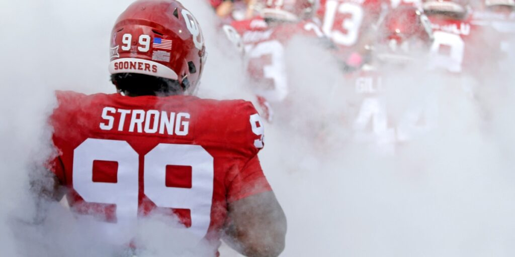 Strong totalizou oito tackles e um sack na última temporada. Ele totalizou 11 tackles e três sacks em três temporadas com os Sooners.