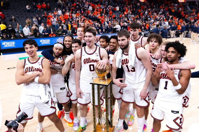 Ayo Dosunmu patinou ofensivamente para colocar Illinois à frente por quatro faltando 46 segundos para o fim. (marca de 1:25) Pontos extras para Giorgi Bezanishvili dançando na pista do Kohl Center após a vitória. (1:42 marca)