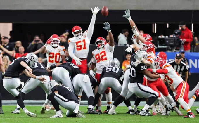 Desde 2014, 21% de todos os field goals com mais de 60 jardas foram contra os Giants. Todos os 21% chegaram no final do quarto período ou na prorrogação. Portanto, é justo que Las Vegas tenha conquistado sua vitória com um field goal de 60 jardas – uma longa carreira do chutador Daniel Carlson.