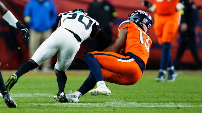 Bryant foi atingido pelo cornerback do Jaguars, Monterick Brown, enquanto saltava para receber um passe alto de Bo Nix no meio na penúltima jogada da derrota do Broncos por 34-20. Brown assumiu a liderança com o ombro e, embora um árbitro inicialmente tenha jogado uma bandeira, Brown não foi penalizado pela rebatida após uma discussão.