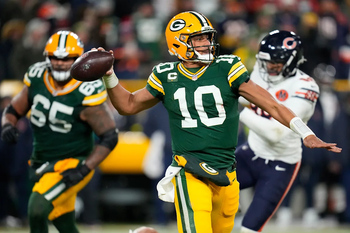 Jordan Love e o Green Bay Packers venceram os Bears no primeiro encontro entre as equipes nesta temporada. (Foto de John Fisher/Getty Images)