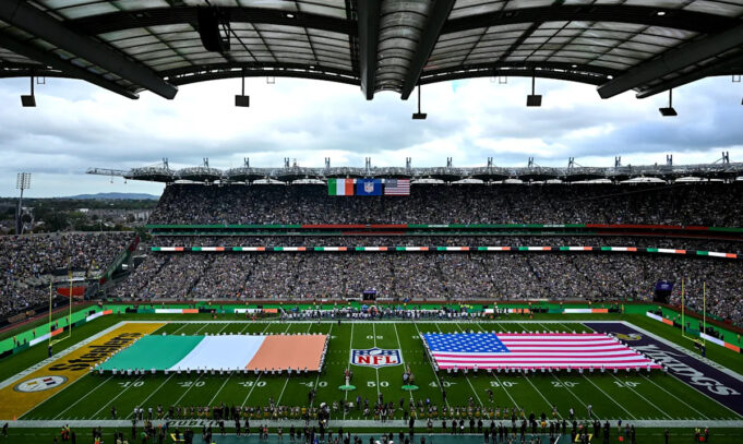 O primeiro jogo da NFL foi atingido em Dublin. Os Steellers de Pittsburg Minnesota Vikings têm uma média de 7,9 milhões de pessoas sintonizadas com a rede da NFL para manter os Minnesota Vikings em 4 semanas, que é um dos mais altos totais para um jogo internacional da NFL até agora.