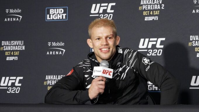 Zakub Wkclackz, vencedor do UFC 320, MMA Junkie e jornalistas conversam com jornalistas após a luta após a vitória de sua decisão dividida no Mix