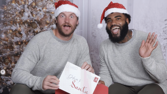 Extremidades apertadas Devin Culp e Payne Durham cada um postou uma série de fotos de férias hilariantes e estranhas no Instagram na véspera de Natal. Neles, os dois podiam ser vistos vestindo roupas combinando da cabeça aos pés (incluindo chapéus de Papai Noel) e fazendo uma variedade de poses cafonas em frente a uma árvore de Natal.