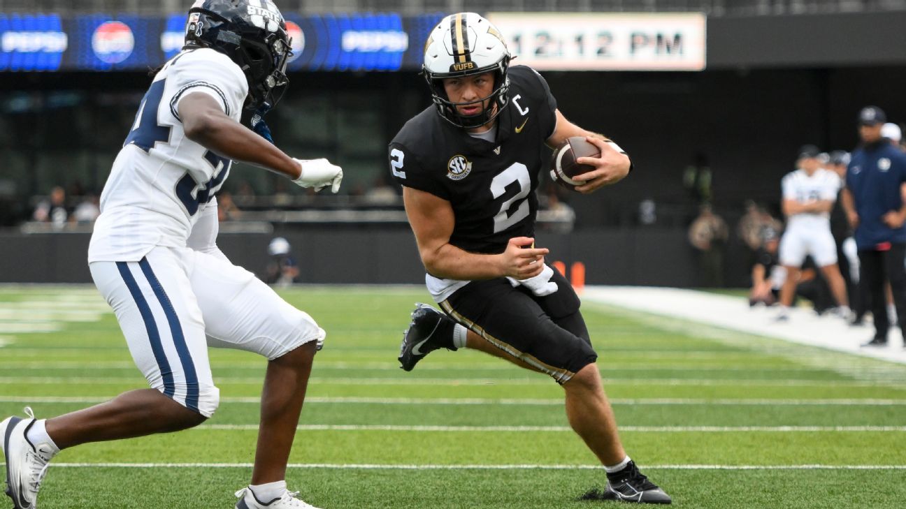 Nashville, Tennessee – Diego Pavia jogou cinco passes de touchdown e correu para outra pontuação para liderar No. 18 Vanderbilt sobre o Estado de Utah 55-35 no sábado.