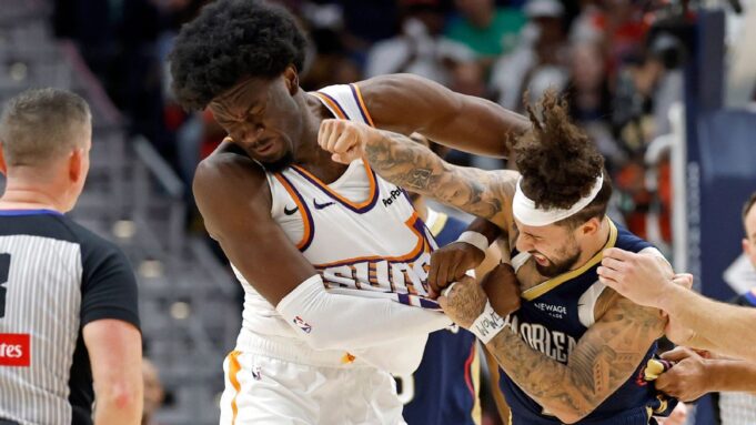 Williams, de 2,10 metros, e Alvarado, de 1,80 metro, trocaram socos após uma falta em Alvarado. Fênix venceu 123-114 para uma varredura de dois jogos consecutivos entre as equipes em Nova Orleans.