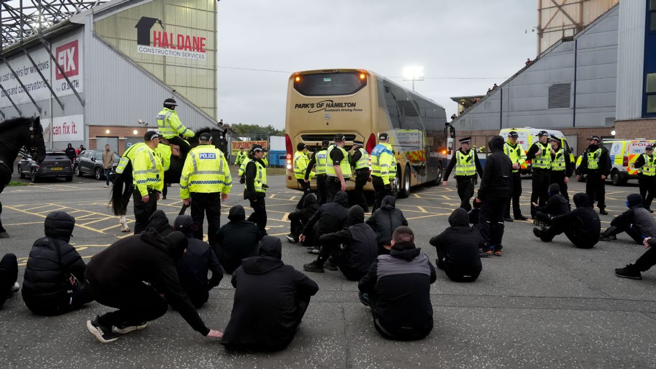 Depois, os fãs do Rangers sentaram -se para tentar parar o ônibus saindo, mas foram dispersos pela polícia. As imagens mostraram que Martin foi escoltado para fora de outra parte do estádio por guardas de segurança antes de sair em um carro.