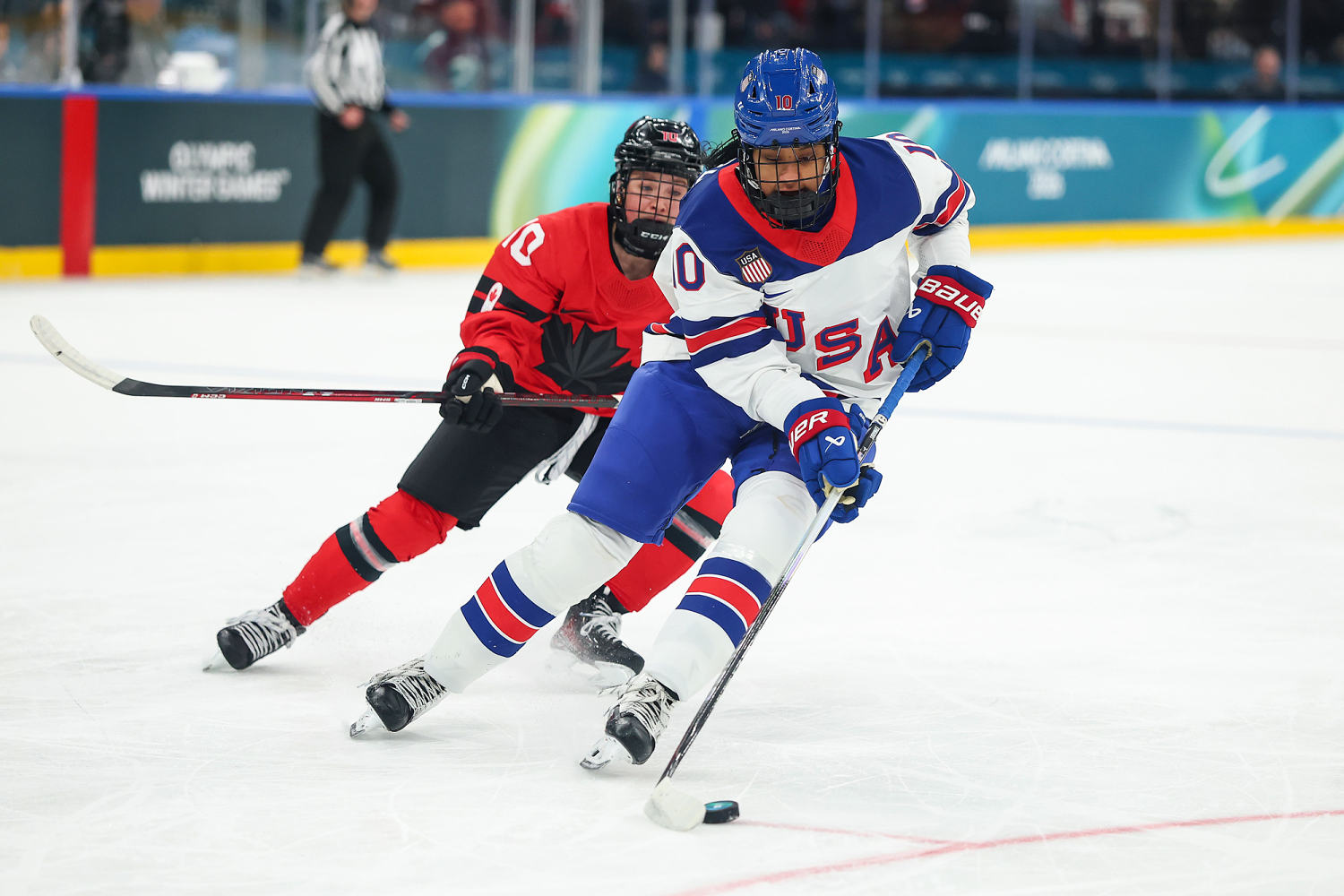 No final do primeiro período, Abbey Murphy patinou perto do gol do Canadá para defender um passe longo, depois colocou para trás de Hannah Bilker sem procurar uma vantagem de 2 a 0. A assistência ousada levou a uma resposta de “Oh” que foi audível sobre a trilha sonora estridente de “Free Bird” do Lynyrd Skynyrd. Mais tarde, Bilka marcaria o segundo gol.