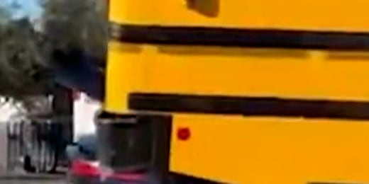 Carro esmagado sob ônibus escolar após acidente na Flórida