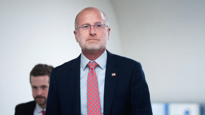 O presidente da FCC, Brendan Carr, reuniu-se com os procuradores-gerais de Nebraska, Tennessee, Texas e Virgínia Ocidental para discutir a nova parceria. (John McDonnell/Getty Images)