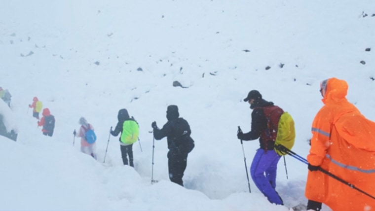 Mount Everest da Blizzard enorme foi preso em várias centenas de caminhantes