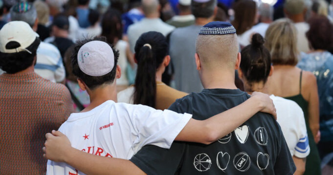 David Osip, presidente do Conselho de Deputados Judaicos de Nova Gales do Sul, disse à multidão: “Assim como a grama aqui em Bondi estava manchada de sangue, nossa nação também está. Aterrissamos em um lugar escuro.”