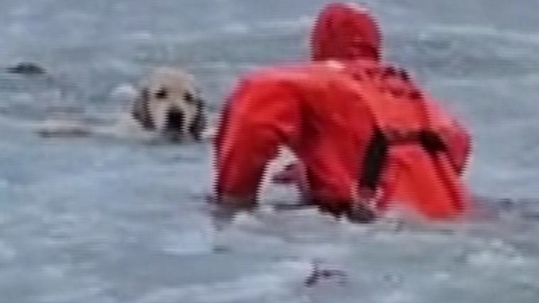 Bombeiros resgatam cachorro de lago congelado em Rhode Island