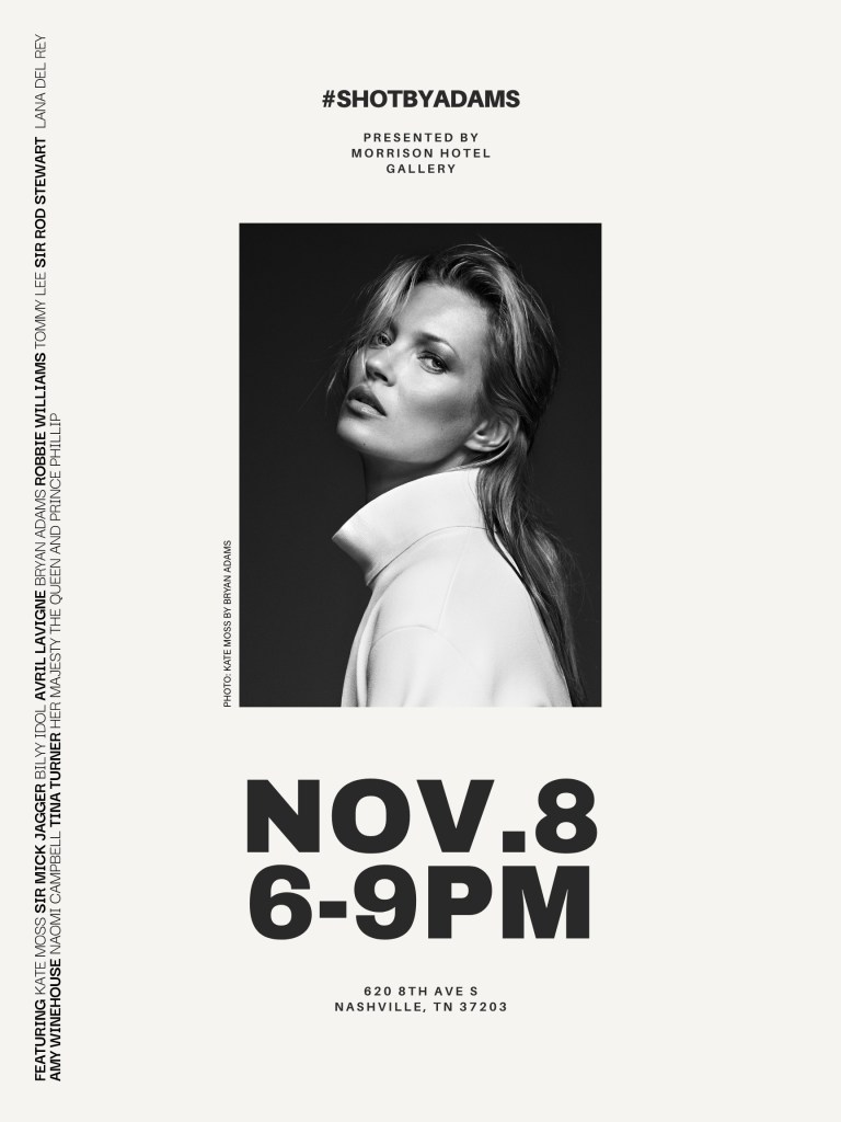 Desde então, Adams fotografou dezenas de capas de artistas e álbuns, juntamente com outros projetos e campanhas, e está compartilhando uma coleção de suas imagens icônicas durante uma exposição em Nashville, Tennessee. Galeria do Hotel MorrisonEm exibição de 9 de novembro a 7 de dezembro.