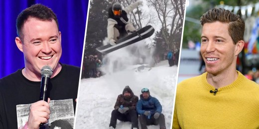 Sean White salta sobre Shane Gillis enquanto pratica snowboard em Nova York