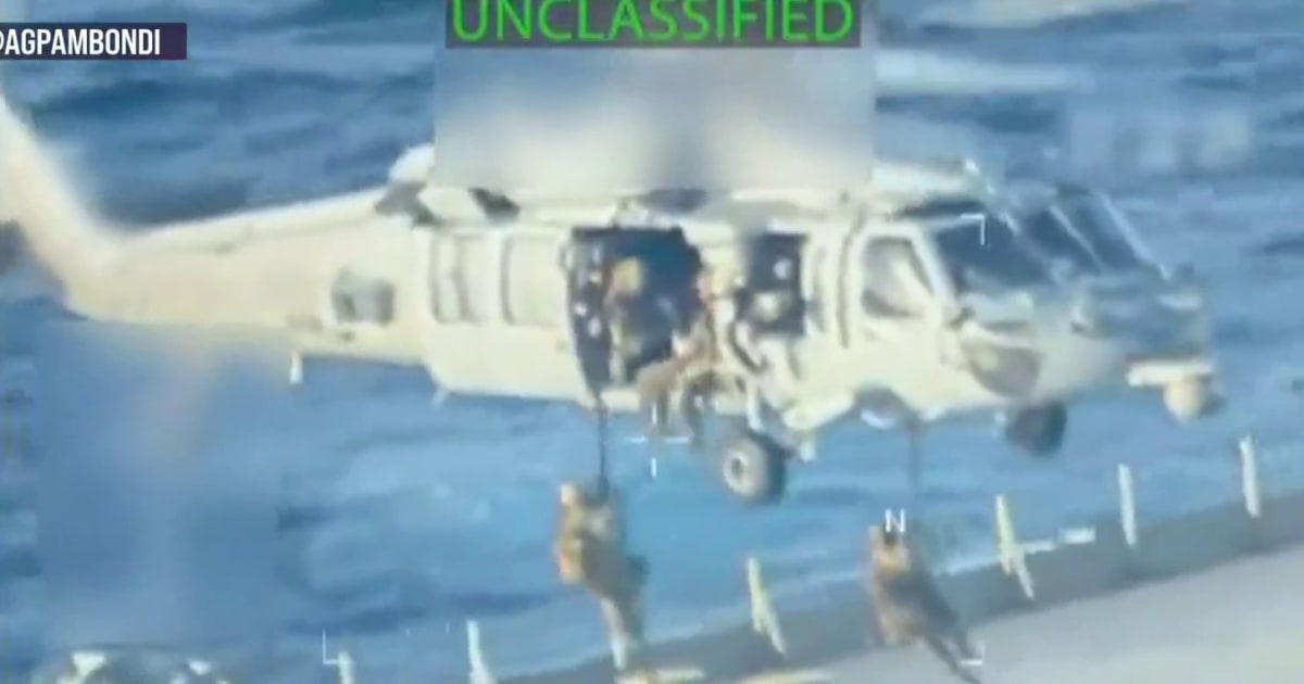 O presidente Trump anunciou a apreensão de um petroleiro na costa da Venezuela. O vídeo mostrava uma equipe de elite da Guarda Costeira embarcando no navio, com o que a procuradora-geral Pam Bondi disse ser um “mandado de prisão” emitido por um juiz. Relatórios Garrett Hack da NBC News.