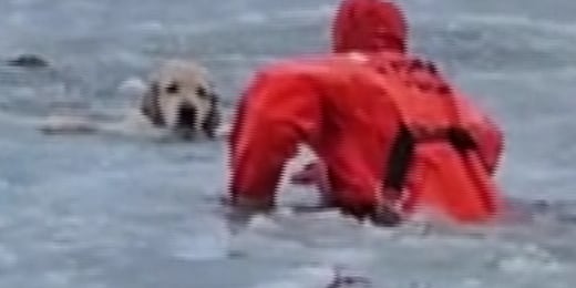 Bombeiros resgatam cachorro de lago congelado em Rhode Island