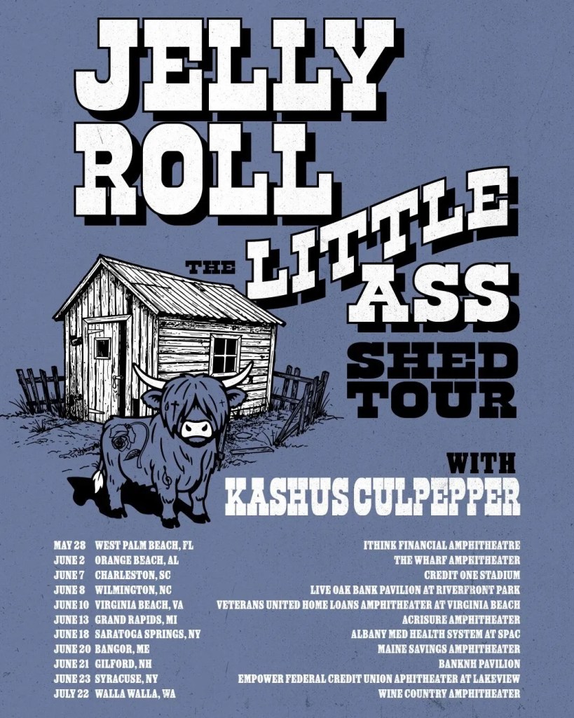 Rolinho de gelatina anunciou uma série de datas de turnê para o verão de 2026. A turnê de 11 datas, chamada Little Ass Shed Tour, incluirá várias datas nos shows “Big Ass Stadium Tour” de Jelly, co-liderando shows com Post Malone.
