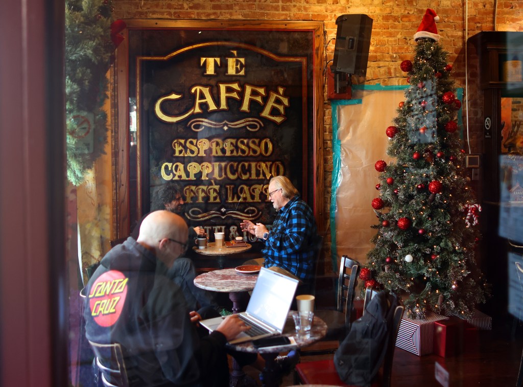 Los Gatos Coffee Roasting Co. A única indicação do longo caminho para a recuperação é o grande cartaz que cobre as portas que antes ligavam o café ao bar expresso do estabelecimento. Caso contrário, a cafeteria estará quase tão movimentada como sempre, quase duas semanas após a reabertura.