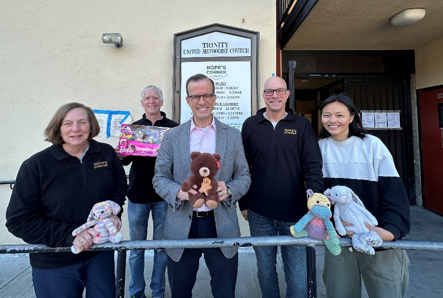 Os brinquedos foram distribuídos à Hope’s Corner, uma organização sem fins lucrativos em Mountain View, para crianças e famílias da comunidade que possam precisar de assistência neste período de festas.