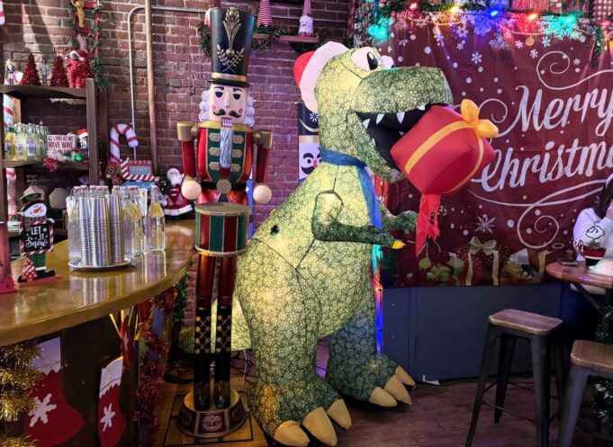 A tendência pop-up “Miracle” começou na cidade de Nova York em 2014 e rapidamente se espalhou por todo o país. Você pode desfrutar de bebidas festivas como Snowball Old Fashioned com toque de pão de gengibre, Run Run Reindeer com redução de vinho licoroso e Chocolate Cherry Cherry Chocosaurus. Todos eles vêm em vidros especiais, incluindo algumas canecas de dinossauros porque… dinossauros. O menu Sippin ‘Santa inclui Tequila e Cranberry Frost Bites e Wreck the Hall (com bitters de figo). Ambos os menus contam com diversas opções festivas sem álcool para quem quer curtir a decoração sem beber.