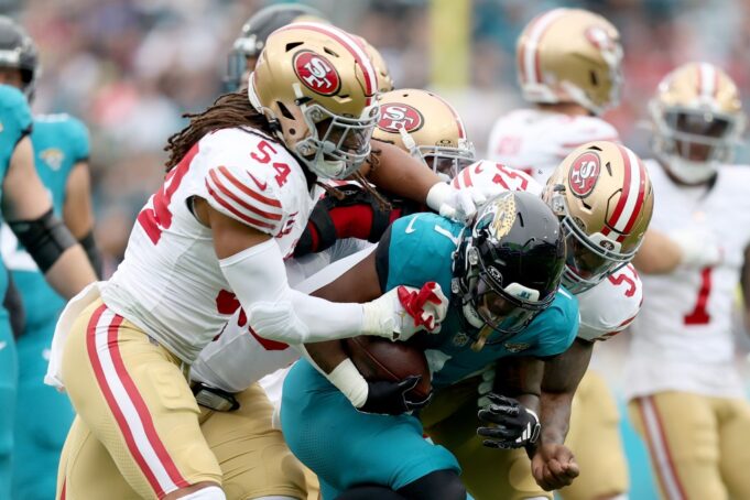 49 pessoas pretendem começar por 4 a 0 na temporada de domingo, quando Nick Bosa organiza o Jaguars (2-1) em Jacksonville.