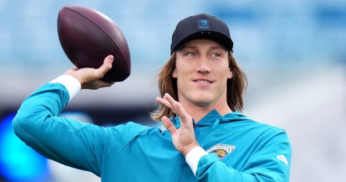 “Quando você vai até Trevor Lawrence, o QB dos Jags, em um bar e pede para ele se agachar”, escreveu ele acima do vídeo, acrescentando na legenda do Instagram: “É disso que os sonhos são feitos”.