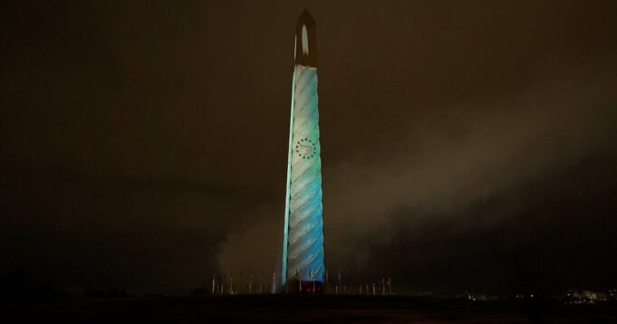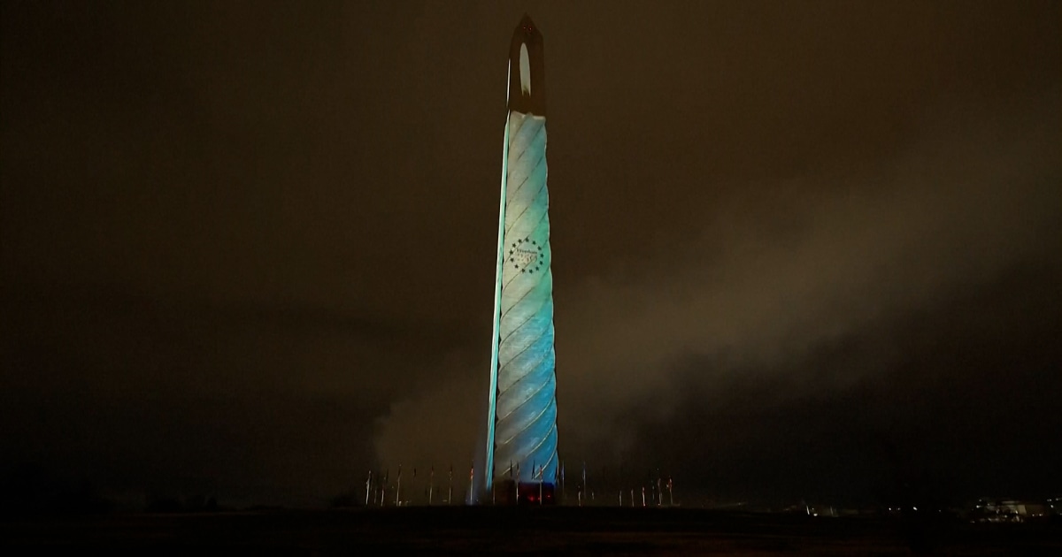 O Monumento a Washington é iluminado para comemorar o 250º aniversário da América