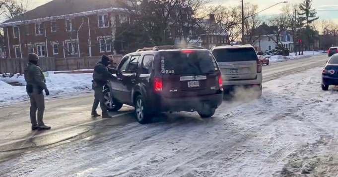 Um oficial do ICE disse a Goode para sair do carro e estender a mão pela janela aberta agarrando a maçaneta da porta do motorista.