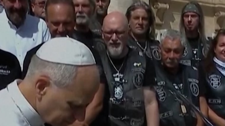O Papa Leo posa com motocicleta para leilão de caridade