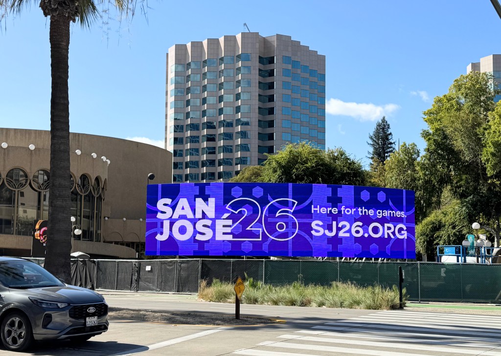 Uma coisa é certa, a marca eletrônica, que agora está curvada na esquina da Alamaden Boulevard com a Park Avenue, agora tem a certeza de que não é mais uma ideia abstrata. Um segundo outdoor está em construção na esquina da Rua San Carlos com a Park Avenue.