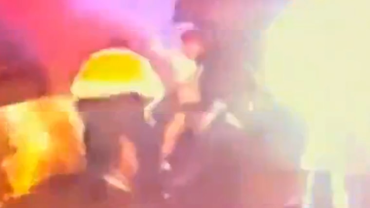 O vídeo mostra policiais resgatando um homem de um carro em chamas