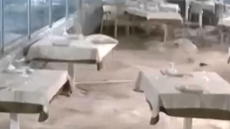 O vídeo mostra restaurantes inundados por tempestades na Sicília