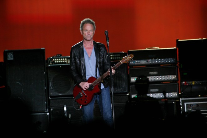 LONDRES – 30 DE OUTUBRO: Lindsay Buckingham do Fleetwood Mac se apresenta no palco da Wembley Arena em 30 de outubro de 2009 em Londres. (Foto de Roberta Parkin/Redferns)