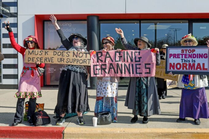 — Scott Herser, um ativista de Palo Alto que organizou recentes protestos anti-Trump, “Vovós Furiosas” que estavam entre os participantes e manifestantes regulares por várias causas progressistas.