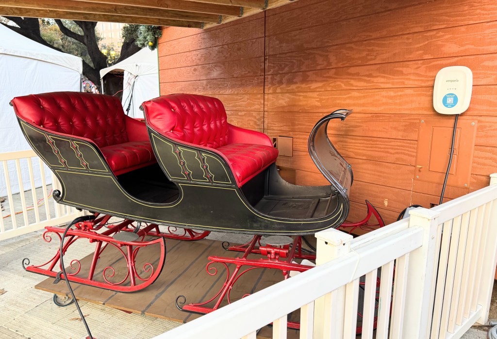 Papai Noel tem um novo passeio em exibição no Christmas Park deste ano, um trenó plug-in estacionado ao lado de sua casa totalmente elétrica. Você se lembra se o Reindeer Local 1225 começará a fazer piquetes na Plaza de Cesar Chavez, mas provavelmente puxarão um trenó na presença.