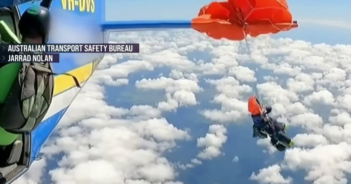 Paraquedista fica pendurado em avião após emaranhar pára-quedas