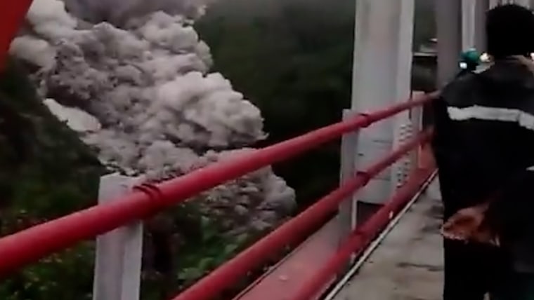 Pessoas correm atrás de vulcão em erupção na Indonésia