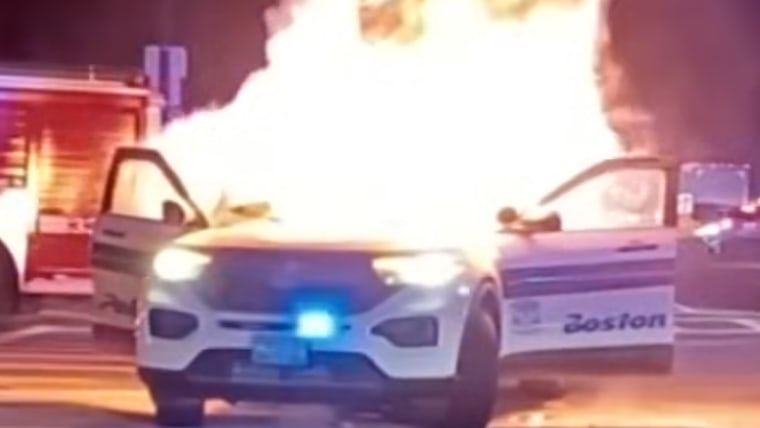 Polícia da multidão Boston incendiou o carro com fogos de artifício