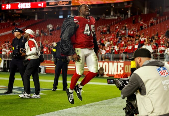Mas aqui está o problema: o Tennessee ganhou suas 61 jardas finais em seis corridas depois que o 49ers assumiu uma vantagem de 31-10 após o salto de 1 jarda de Brock Purdy para George Kittle. Foram incluídas corridas de 20 jardas de Tony Pollard e 20 jardas de Tyza Spears.