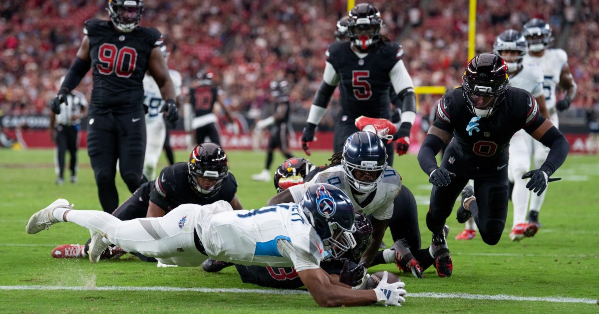 Na parte de trás das 5 semanas 5-A-21-3 na rua contra o Arizona Cardinals, Tennessie Titans estava a menos de cinco minutos e puxados entre 21-12 Cam WardEscolha 1 da primavera passada NFL DraftSolte um passe em direção à última zona.