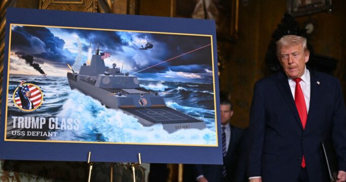 Fazendo o anúncio em um evento na propriedade de Trump em Mar-a-Lago, na Flórida, o secretário da Marinha, John Phelan, referiu-se ao navio de guerra como um “navio de guerra da classe Trump” e disse que o próximo navio, chamado USS Defiant, seria “o maior, mais mortal, mais versátil e mais bonito navio de guerra em qualquer lugar do mundo”.