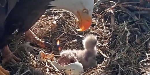 Casal de águias Jackie e Shadow dão as boas-vindas a um par de águias