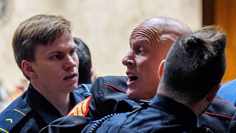 Veterano da Marinha quebra braço durante protesto contra a guerra