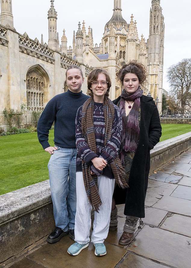 Furiosas estudantes fundadoras da Sociedade de Mulheres da Universidade de Cambridge (CUSW), Thea Sewell, Serena Worley e Meave Halligan (da esquerda para a direita), estão protestando contra o apelo do Newnham College para permitir a entrada de homens biológicos que se ‘identificam’ como mulheres